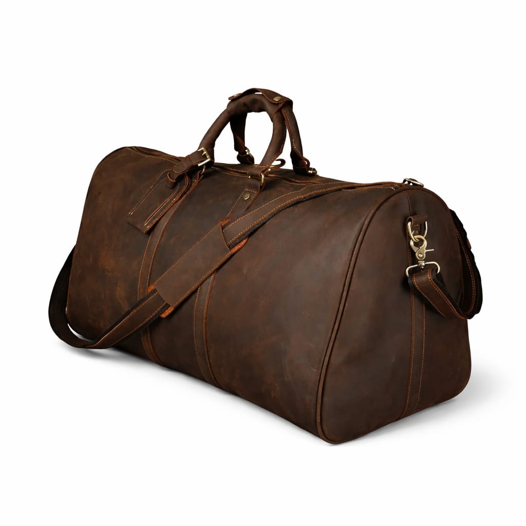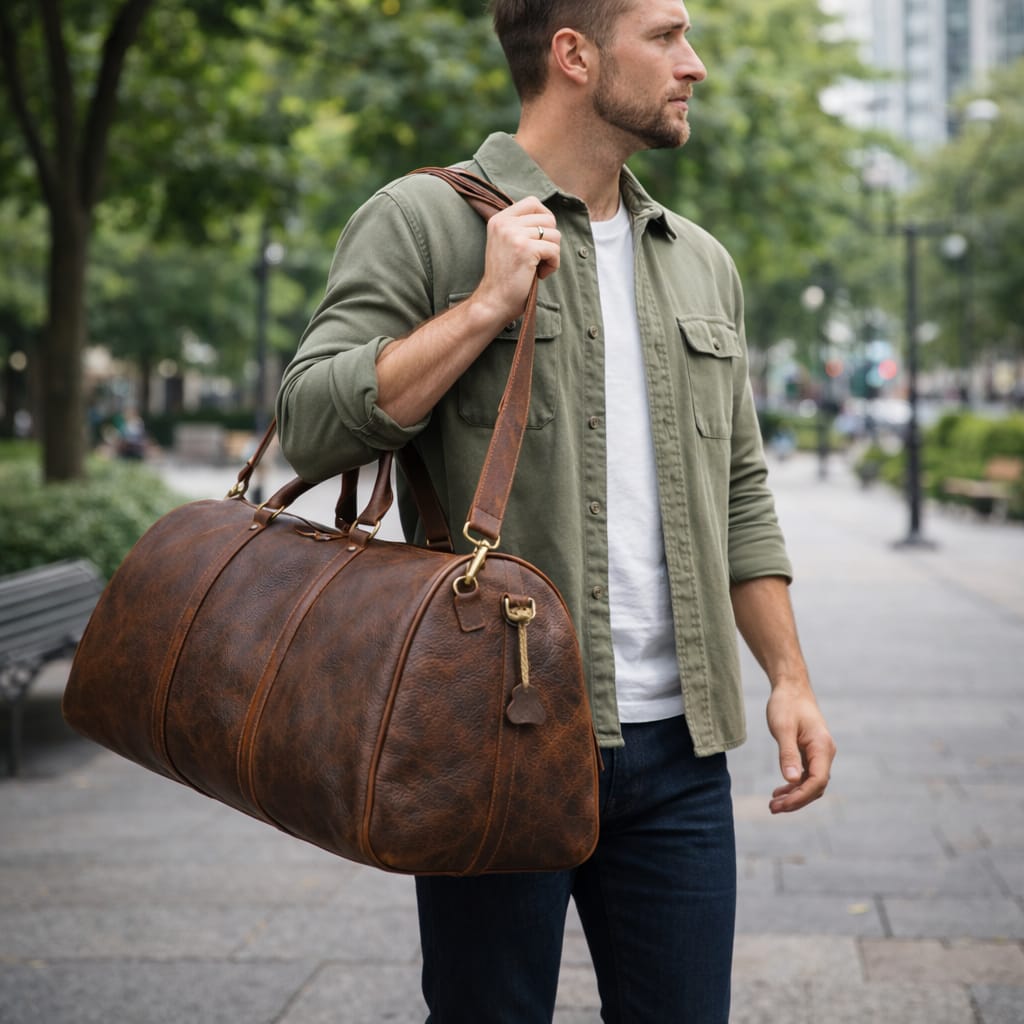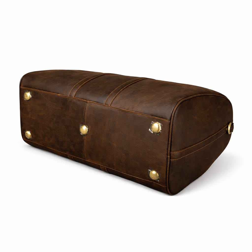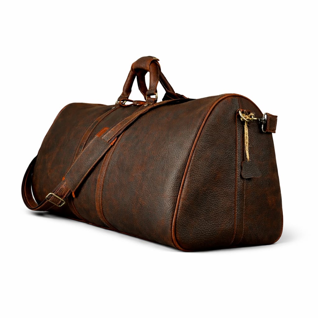 Bolsa de viagem masculina em couro genuíno, com design oversize e estrutura rígida, ideal para quem procura resistência, elegância e grande presença visual. Uma peça robusta e sofisticada, pensada para viagens, negócios ou ocasiões especiais.