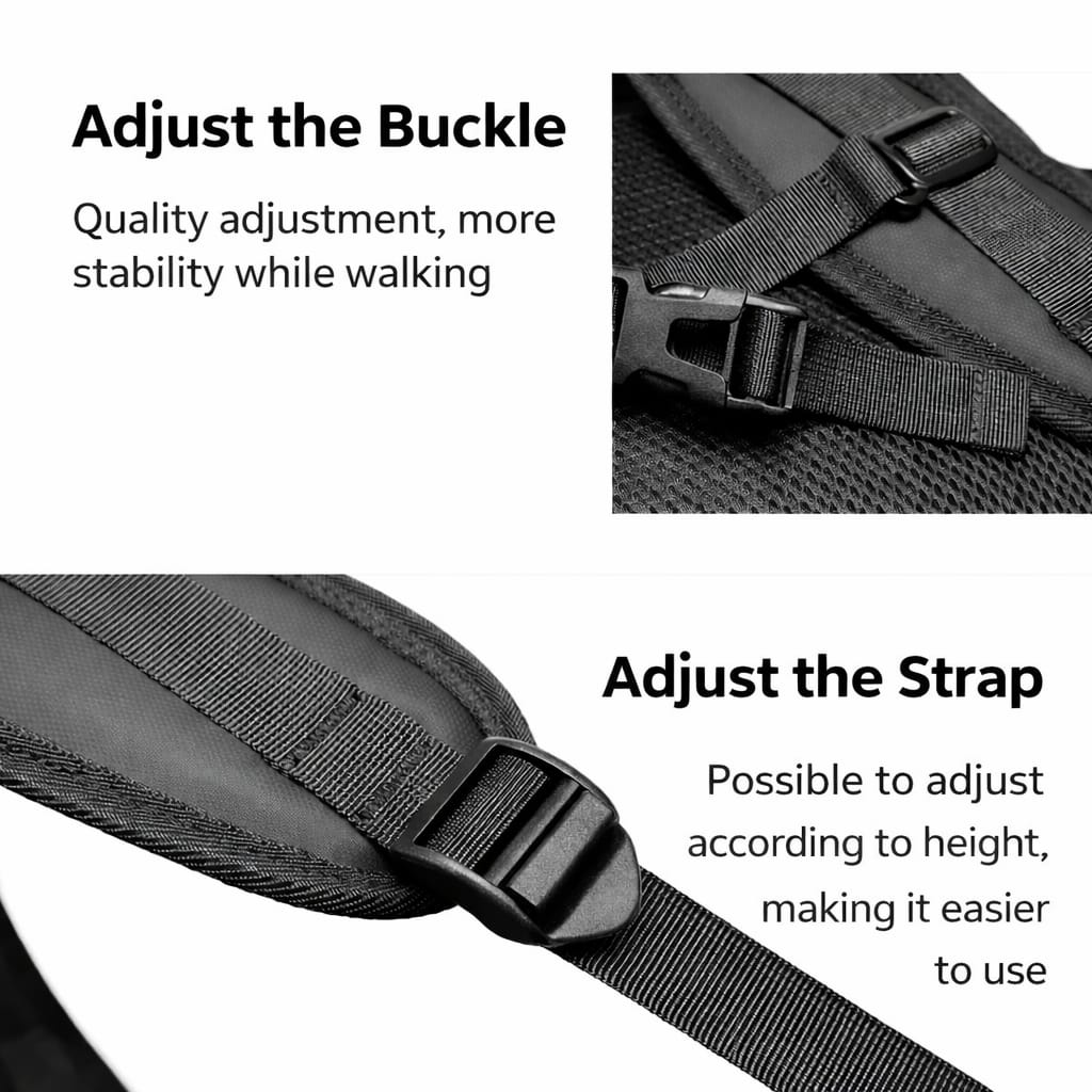 - Conforto: Alças curvas ergonómicas com redução de carga.